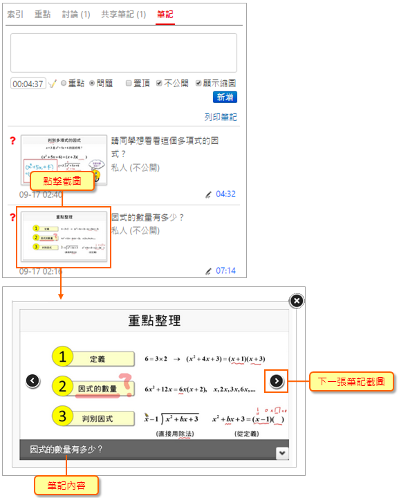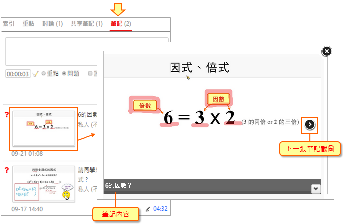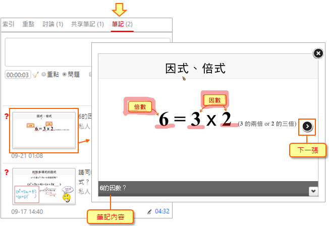 上課時,就可以在段落暫停後,切換到筆記的頁嵌