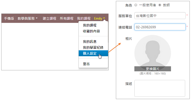 並且填入教師資料,有了教師身分後,就可以享有建立班級、開設課程 ... 等功能。