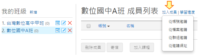 將班上同學加入班級