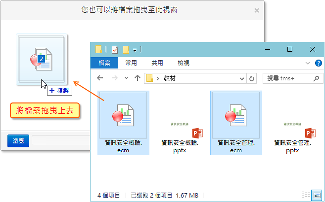 直接從電腦一次拖曳多個檔案到「網站」,即可完成教材上網。