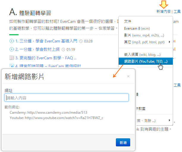 將重要的討論,或上傳到教材區的 EverCam,安排到適當的學習活動,方便同學依照規劃,更清楚的進行學習。
