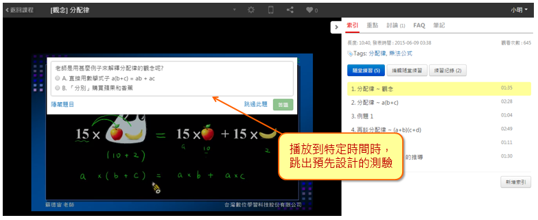 課堂中,透過手機掃描 QR code 與作答,立即得知學生的理解程度。