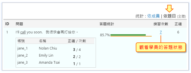 觀看學生的隨堂練習歷程